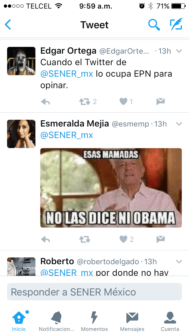 El día de hoy fue claro que ser Community Manager (CM) en Twitter es un trabajo complejo en el que prever la reacción de la audiencia es complicado, como puede dar testimonio el CM de la cuenta de Twitter de la Secretaria de Energía; aunque el tweet ya fue borrado, cualquiera sabe que internet es memoria eterna en la que nada se borra realmente, por lo que les traemos las respuestas que mas nos gustaron de hoy.