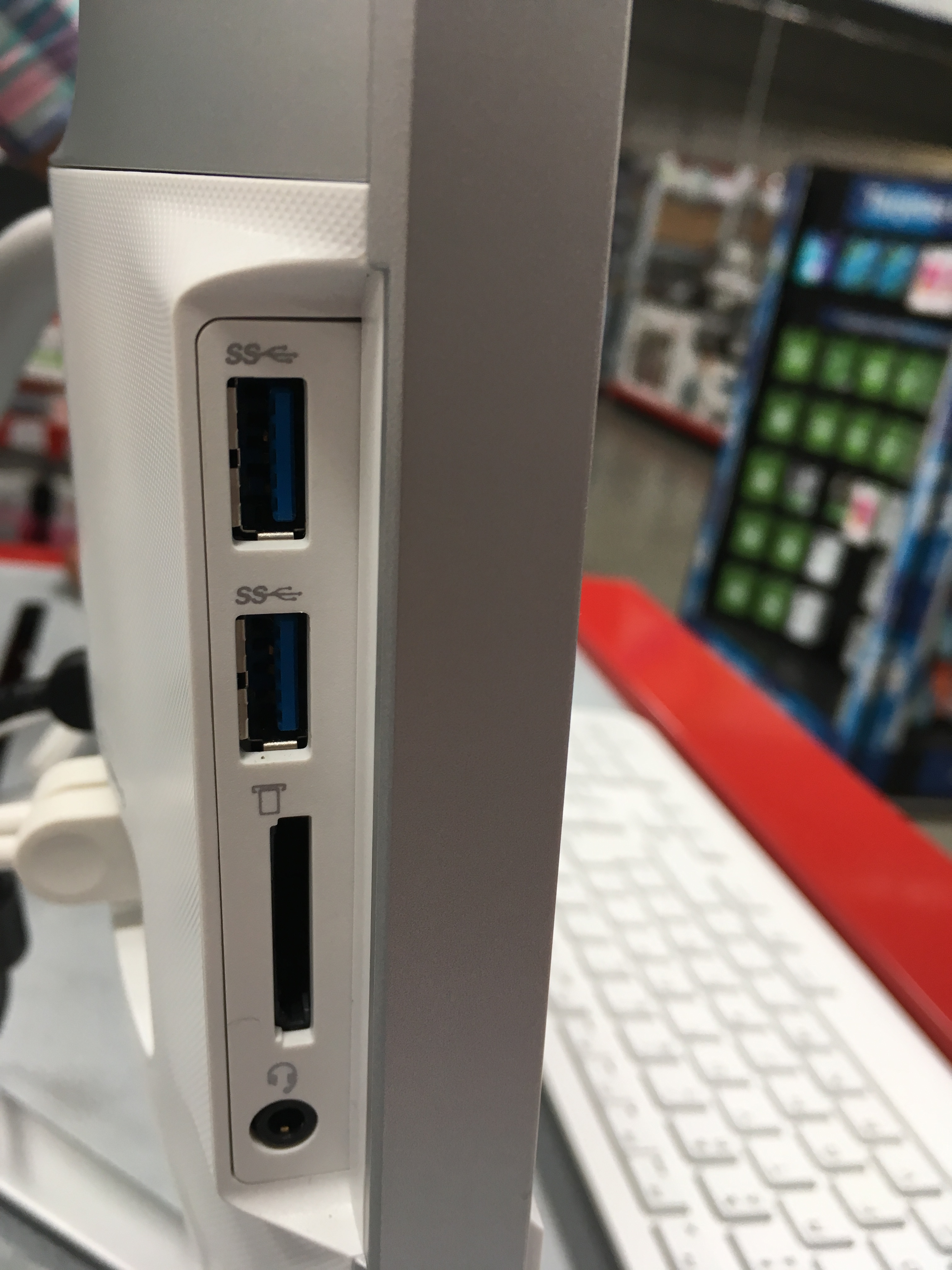 Sin duda este es un apartado destacable en este equipo, ya que al contrario de otros equipos todo en uno, tenemos una gran cantidad y variedad de conexiones, comenzamos con un panel lateral en el cual podemos encontrar 2 puertos USB 3.0, 1 lector de tarjetas SD y el conector de audio combo.