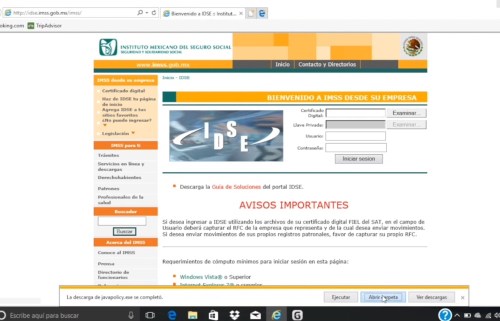 Una vez que termine, cerraremos la ventana y podremos acceder a las paginas del IMSS.