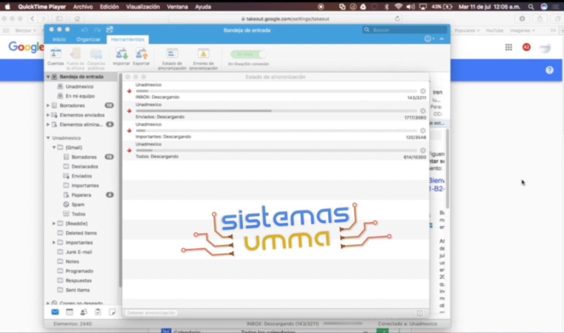 Una vez que este agregada la cuenta debemos de esperar a que se sincronice , después de eso debemos de usar la opción de exportar correo, ahí la opción cambia de lugar según si usamos Windows o Mac