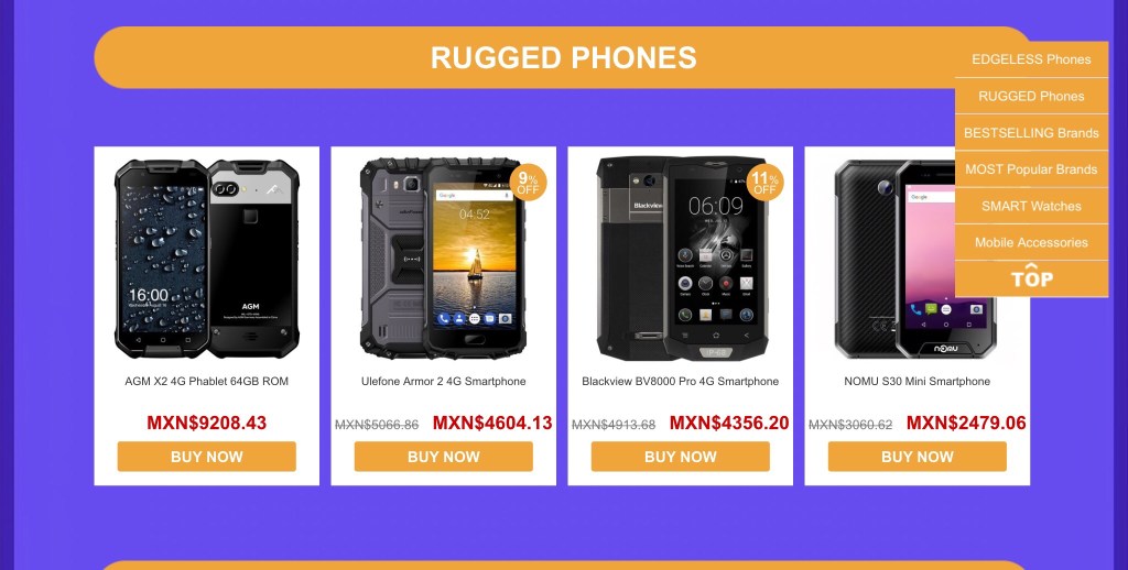 Si eres de los que necesitan algo mas de durabilidad en tu equipo Android, porque eres una persona muy activa , la categoría de teléfonos rudos de Gearbest es donde debes buscar, ya son equipos de construcción solida para aguantar caídas y golpes, ciertamente que no sera un equipo ligero ni muy delgado, pero en definitiva estaras mas tranquilo.