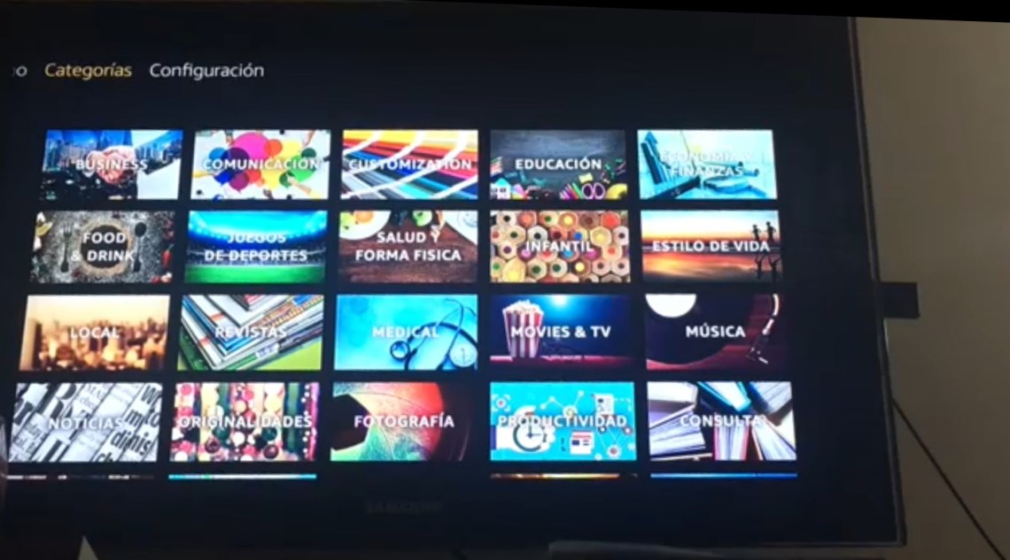 No hay una app de tienda de aplicaciones, sino mas bien un menú completo con categorías bien organizadas como podemos ver en la siguiente imagen