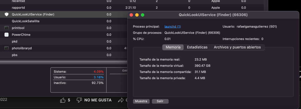 Esto puede suceder en varios tipos de archivos o en todos, por lo que para solucionarlo lo que haremos será reiniciar el programa de vista rápida, para ello, debemos ir al monitor de actividad de macOS, que se encuentra