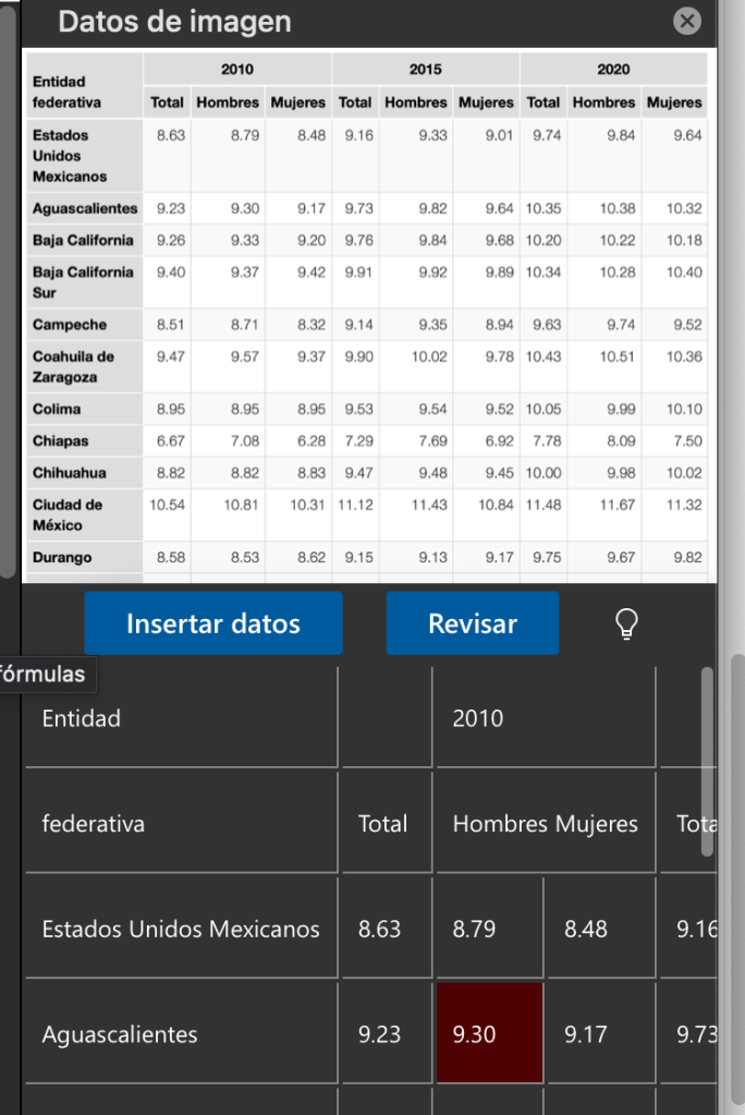 Ahora solo debemos verificar los datos en donde Excel tiene duda para hacer las correcciones pertinentes.