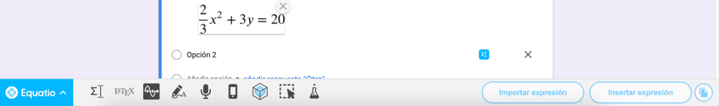 Al presionar sobre estos botones, aparecerá en la parte inferior, la barra de herramientas de equatio, como la vemos a continuación.