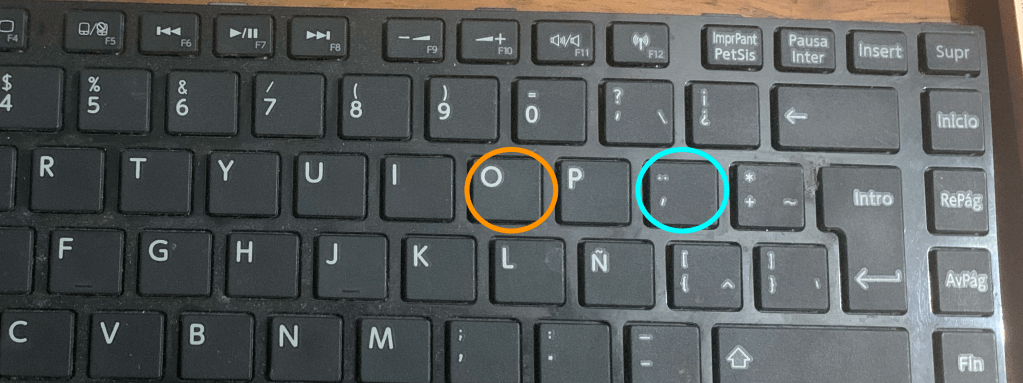 A diferencia de los anteriores, no se requiere presionar las teclas al mismo tiempo, sino presionar la tecla de acento y después presionar la vocal que queremos acentuar.